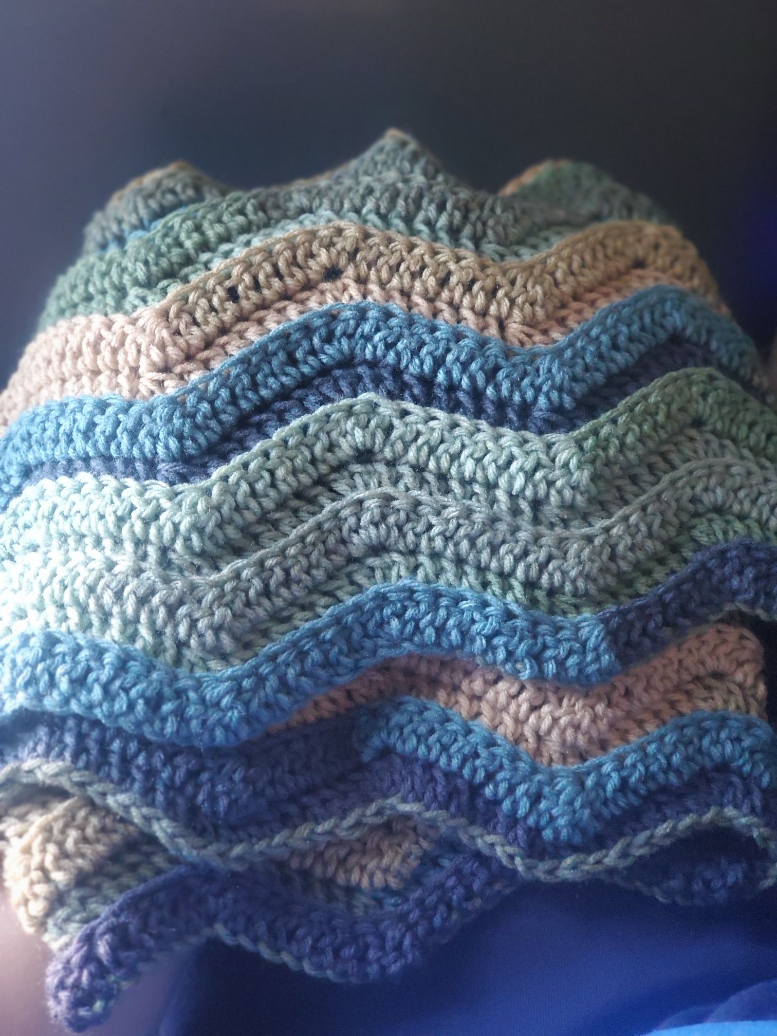 On the left is a blanket I am working on for a friend. After finishing a blanket for my father for Christmas, I was inspired to make more despite the resources that go into making one. It has been slow progress since I have less time to work on it as well as being more focused on work now that the new semester has started. It’ll get finished eventually…